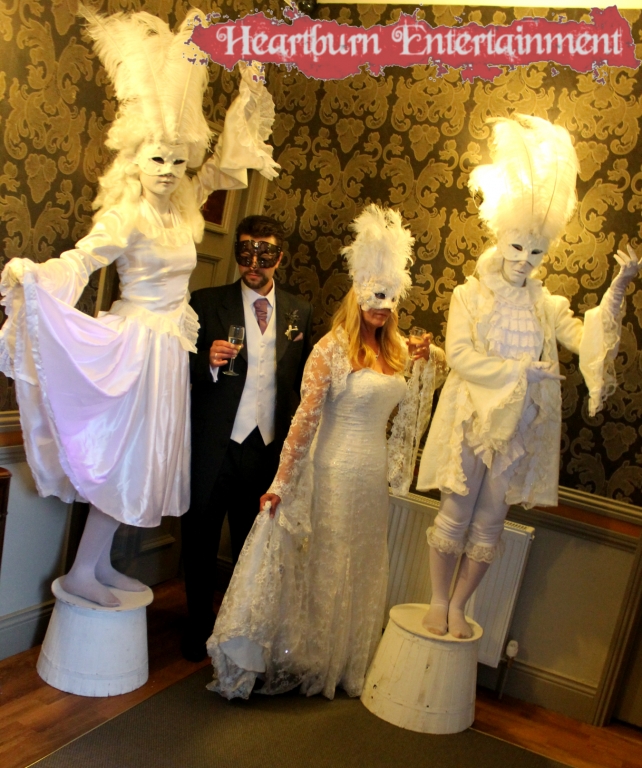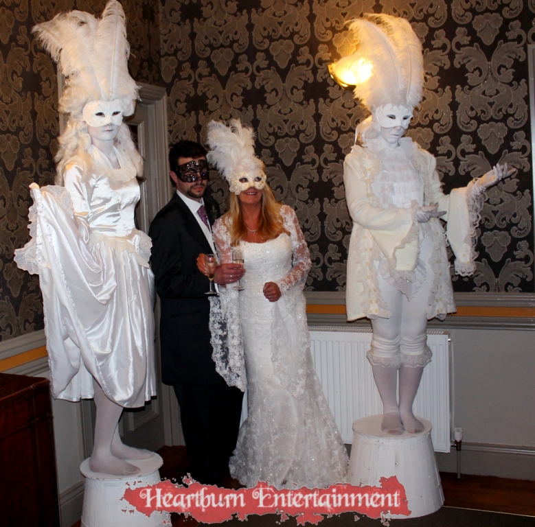 Our masquerade human statues are often booked alongside our masquerade stilt walkers and masquerade fire performers and fire show.