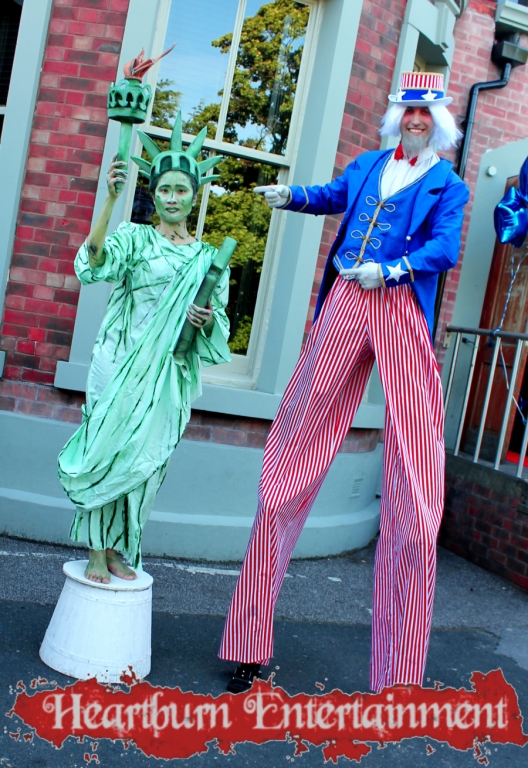 Our Statue of Liberty human statue is often booked along side our other American themed entertainment including our Uncle Sam stilt walkers and cheerleader roller skaters.